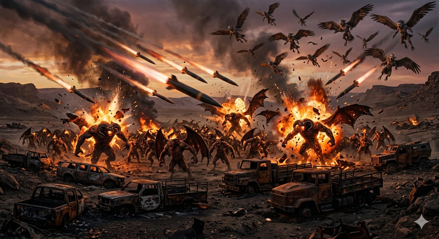 Which gives demons their most important property: conservation of momentum still applies to them, meaning they can be shot with good enough kinetics. A hypersonic missile or shaped charge anti-tank landmine can get you a clean kill. A tungsten bullet machine gun in the unlucky situation you happen to be in small arms range. Pew pew.
